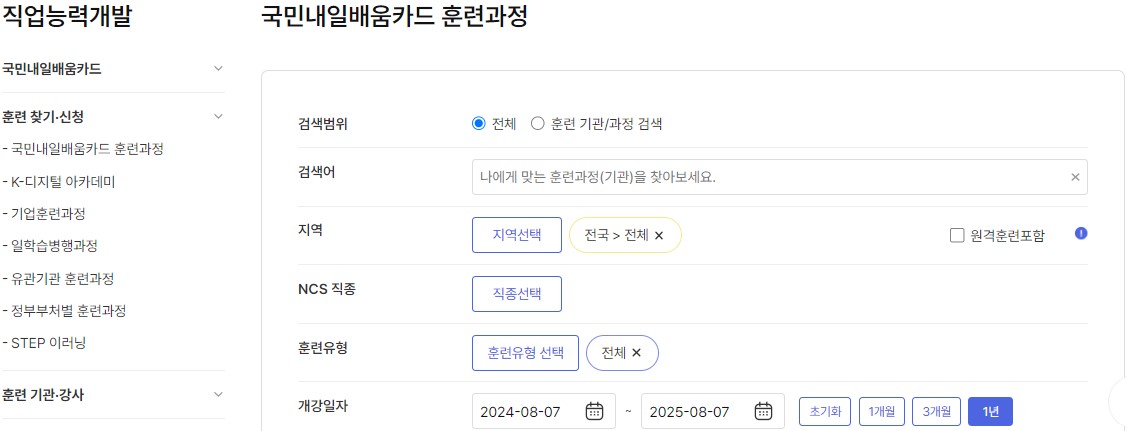 로그인을 하고 나서 원하시는 훈련과정을 찾으시면 됩니다.