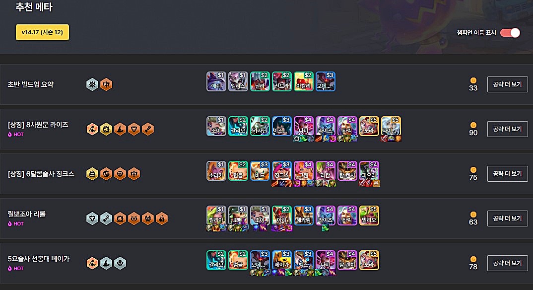 롤체지지에서 제공하는 초반 공략법을 캐릭터별로 알아보겠습니다.